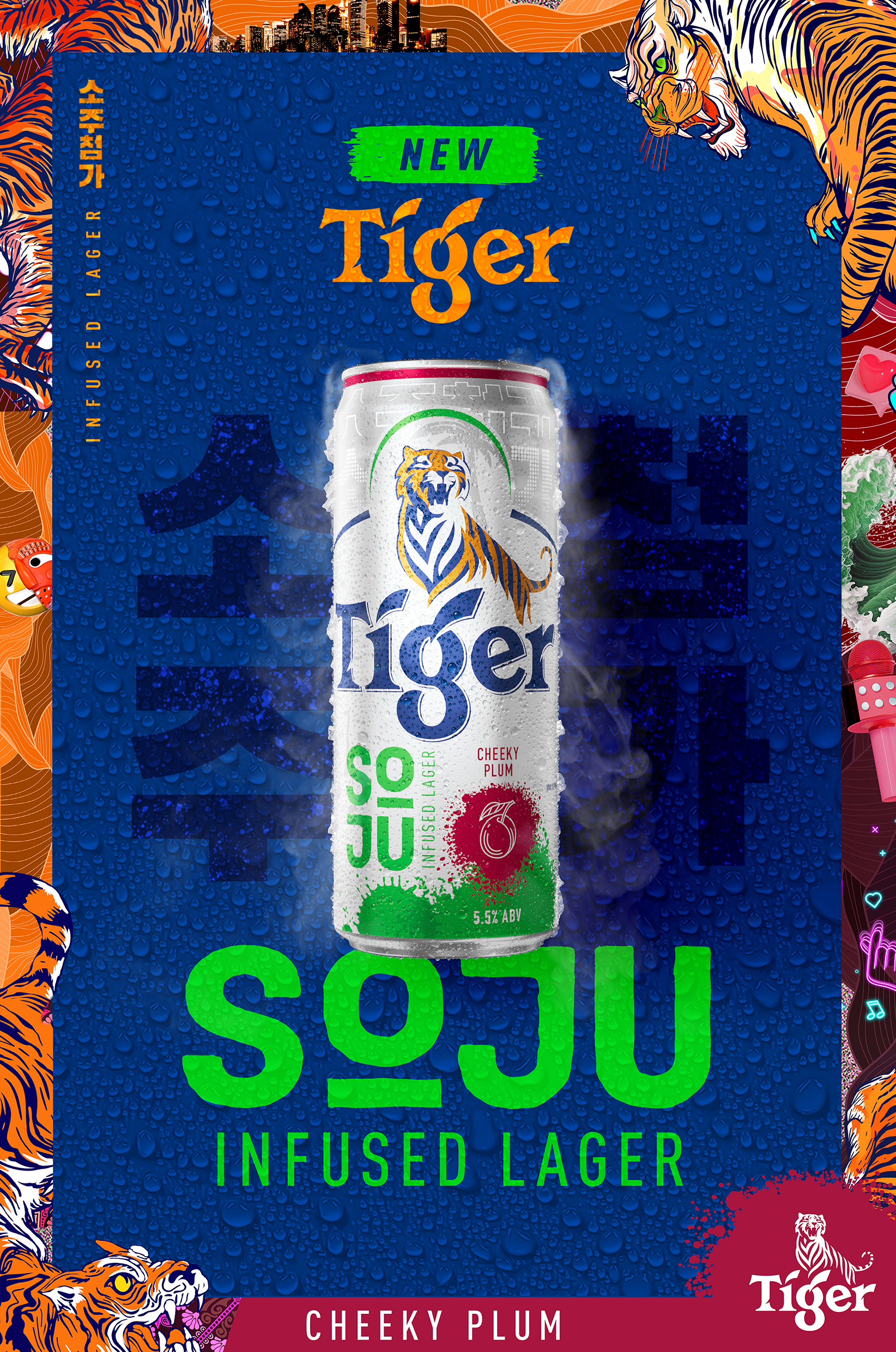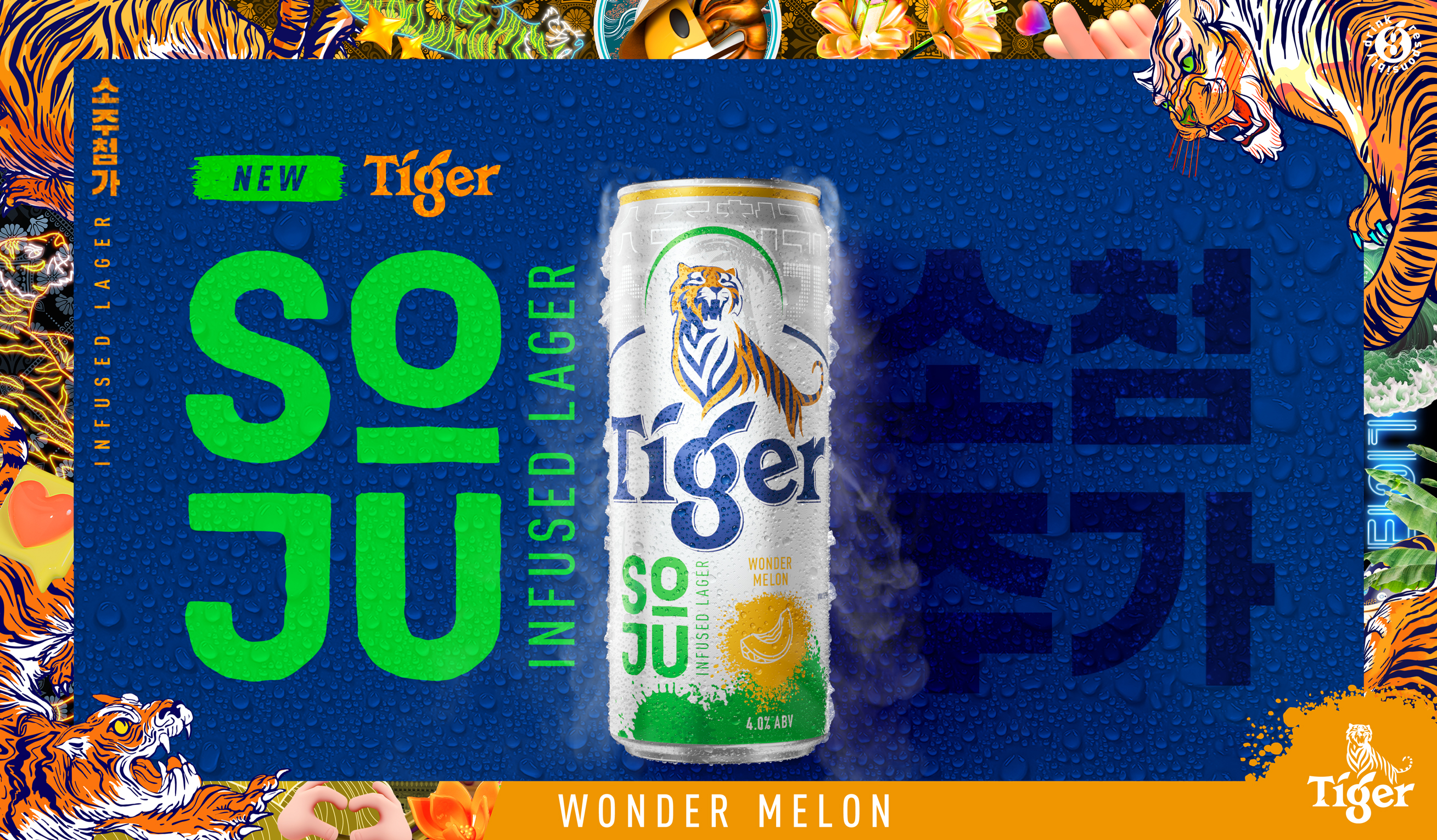 Tiger Soju Infused Lager launches in four flavours — Gutsy Grape, Cheeky Plum, Wonder Melon and Punchy Peach — marking one of Tiger’s biggest and boldest collaborations to date.